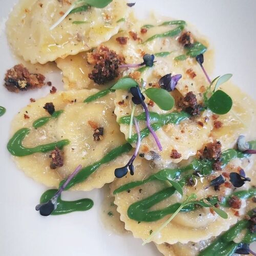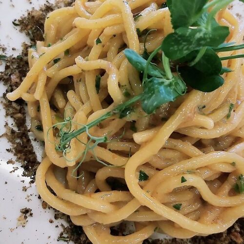 A pleasant (and excellent) provincial restaurant with a modern feel and a traditional brick-vaulted ceiling, where owner-chef Samuele Miglioli pays tribute to local traditions in his cuisine (don’t miss the marubini pasta in three broths and the famous pumpkin tortelli). The dishes here focus on seasonal ingredients which are carefully transformed into generous dishes full of flavour, as demonstrated by the rice timbale served on a delicious beef ragù and topped with beef carpaccio. There’s also an excellent selection of wines, with a particular focus on sparkling wines.