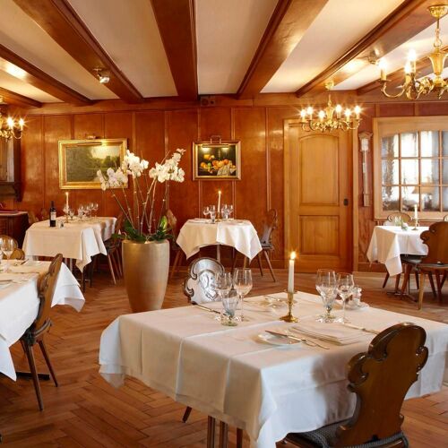 Since 1995, Susy and Markus Sager-Meyerhans have been the friendly faces behind this long-established restaurant with its roots in the 18C, when it was a tavern. In addition to cordial service, you can expect a hybrid of traditional and modern-meets-classic cuisine; at lunchtime there is a somewhat reduced menu. Outside you will find the Rosenterrasse and Rössligarten. Charming guestrooms are also available.