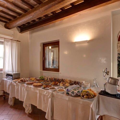 Situated amid hills in a secluded and panoramic location, this farmhouse offers guestrooms, a spa and a restaurant, where meat (often cooked over the grill) takes pride of place on the menu, alongside various local specialities such as stuffed pigeon, roast goose and “coniglio in porchetta” (stuffed rabbit).