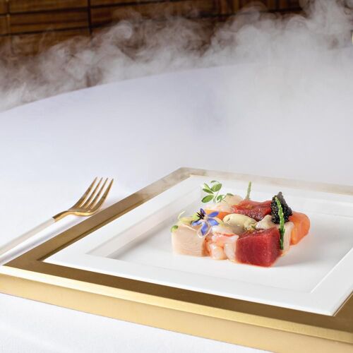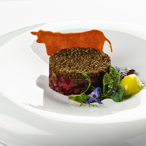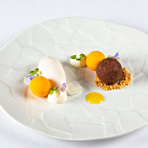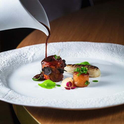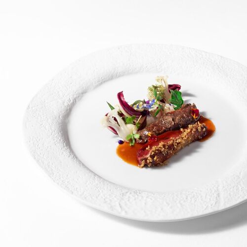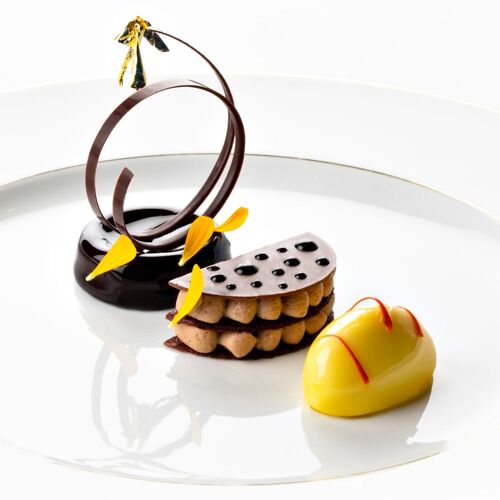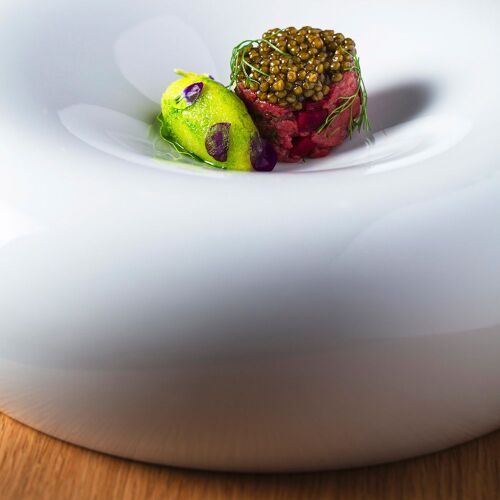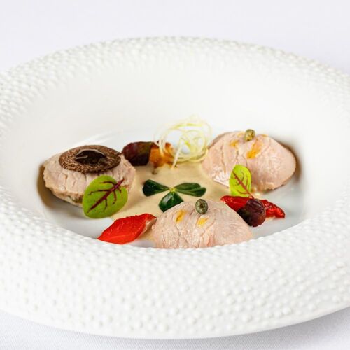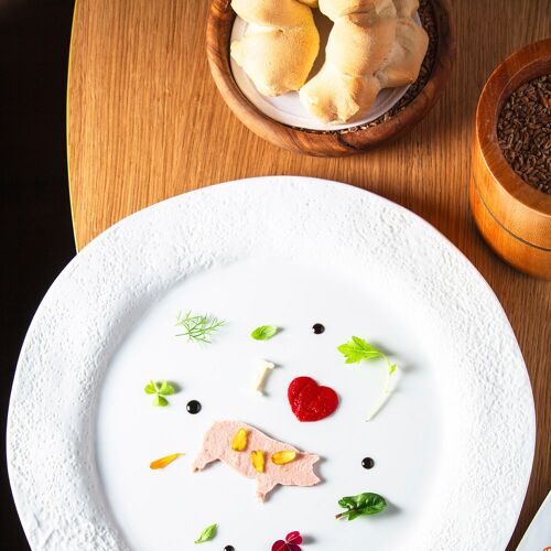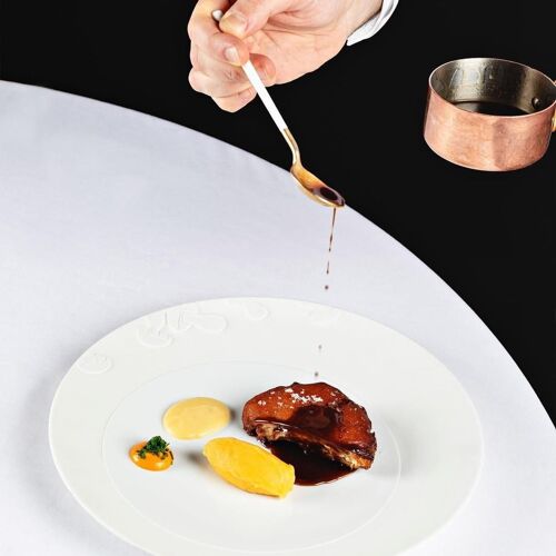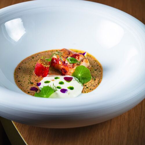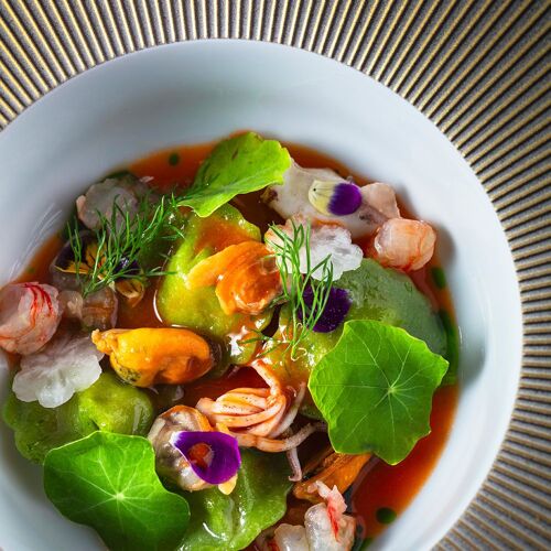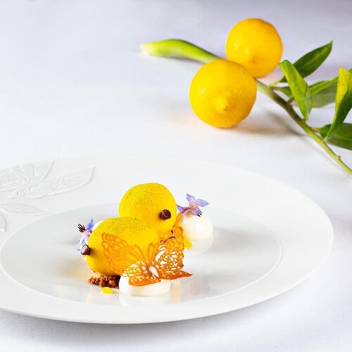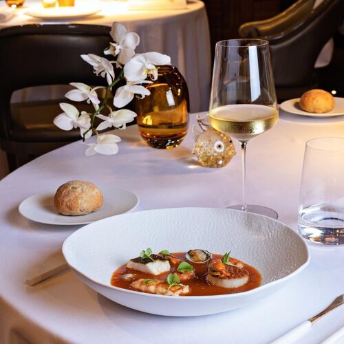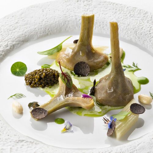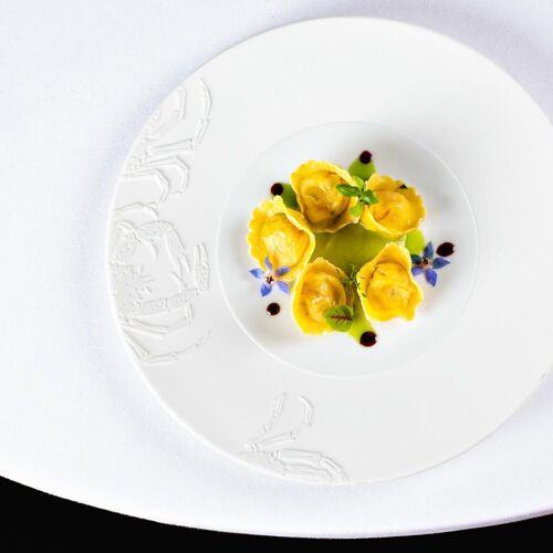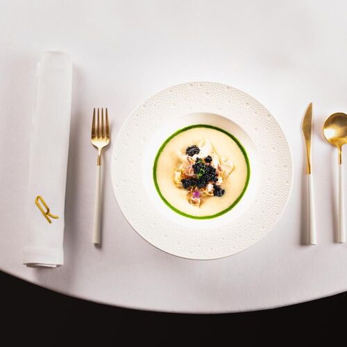 Born in the southern Italian region of Basilicata, chef Antonio Salvatore has travelled incessantly, thanks to his profession: Spain, England and Russia – where he met the new owner of Rampoldi. In the former cigar lounge, he has created a tailor-made setting (only five tables), where he applies himself with unfailing rigour to serving top-notch contemporary Italian cuisine that is both tasty and precise. The sourcing – no surprise here – cannot be faulted: he draws on small-scale producers around Menton and San Remo, but certain produce is also imported from the south of Italy. A few examples of his dishes: bottoni di vitello tonnato; cabri dodici ore; texture di cioccolato… At the brasserie, meanwhile, the menu features a handful of modernised classics.