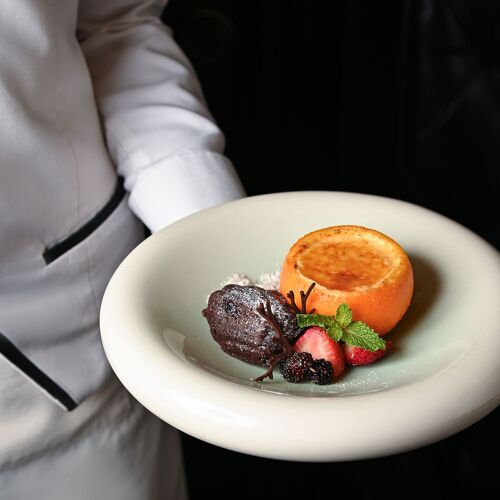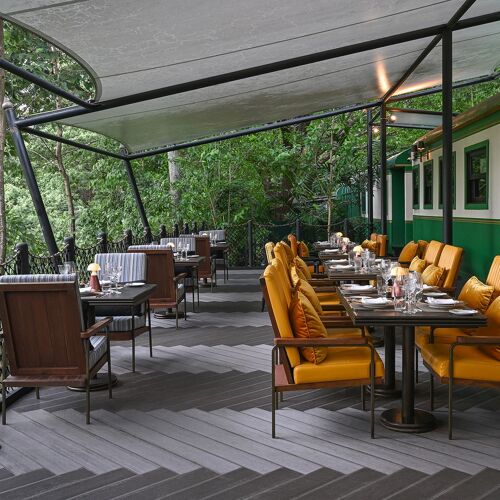 Housed in a beautifully restored railway carriage within the resort's lush grounds, this stunning dining spot with lakeside tables is inspired by the Orient Express. Open in the evenings only, it serves both an à la carte and a changing set menu featuring premium ingredients and a classic European touch, channelling the golden age of rail travel. The bœuf filet mignon with red wine jus, sautéed vegetables and mash is a signature – elegant, comforting and full of old-world charm.