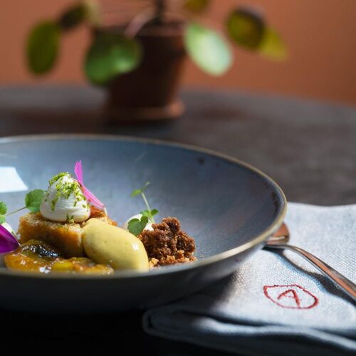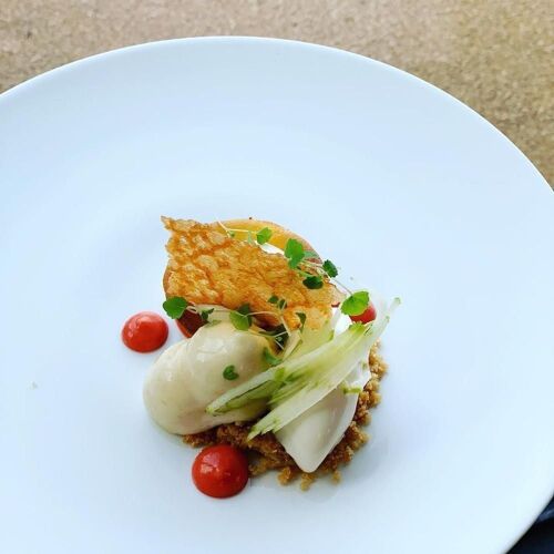 Ludovic Vanackere’s converted this old farm in line with his sustainable vision. If the produce doesn’t come from his own impressive kitchen garden, which can be admired from the floor-to-ceiling windows, it is sourced locally. The surprise menu showcases the best of Namur and the region. Veggies take the limelight, prompting extra creativity in the winter season, illustrated by the chef’s work with different cabbage textures enhanced by a sauce packed in fermented veg, peanuts and sate-flavoured spices. Regional cooking founded on throbbing recipes and powerful sauces.