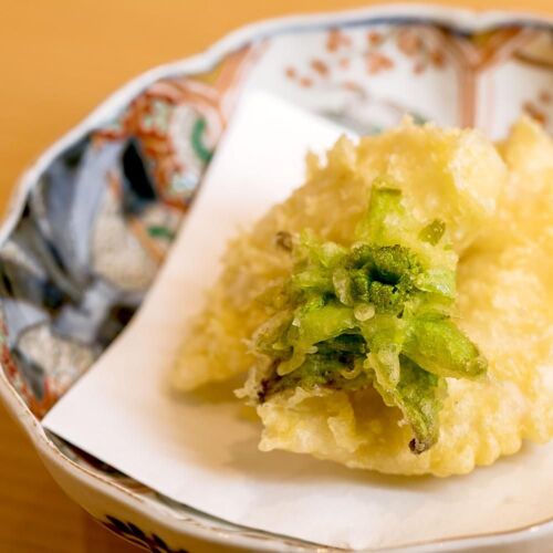 The chef attends to his cooking with the steadfast spirit of a craftsman. He draws encouragement from his father, who cultivates rice and vegetables, and his mother, who helps with the service. ‘Straight from kitchen to table’ is his credo; no-nonsense cooking that brings out the natural goodness of the ingredients. In his soup dishes, he prepares broth with neither salt nor soy sauce, favouring instead the natural saltiness of the ingredients to create harmony. Each item on the extensive menu is prepared with attention to detail and simple arrangements demonstrate his sincere approach.
