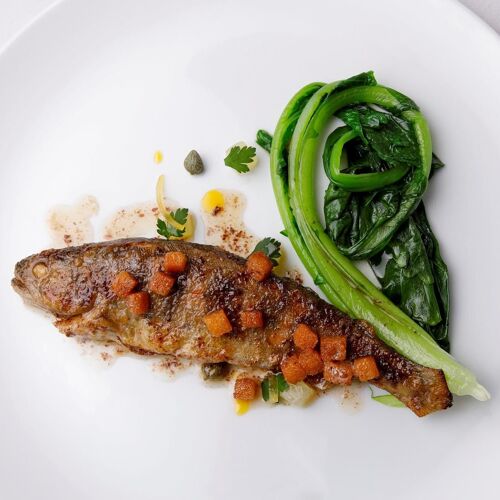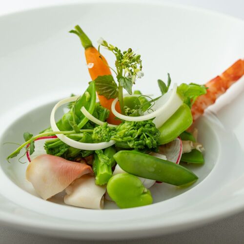 Nara and Hokkaido are co-stars in this drama of gastronomy. Hokkaido ingredients are used because of the collaboration with French restaurant in Sapporo. Through this interplay of two backgrounds, the charms of Japan's natural bounty come to the fore. Ingredients from Nara take the stage in plates garnished with vegetables and cuisine of amago trout. Seafood and potatoes arrive from the north. As the play unfolds, the diner’s knowledge of food producers and producing regions deepens.