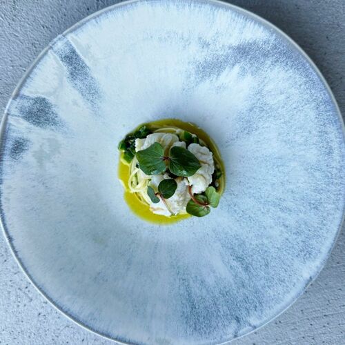 The chef prizes his relations with food producers; the better to express the appeal of each region’s topography. Lega’ means ‘bind’ or ‘connect’: the restaurant binds together the food cultures of Italy and Nara and puts diners in touch with the thoughts of food producers. Sushi of uncured ham and persimmon leaf, venison senbei—a dish resembling Nara’s famous deer crackers—and other unique items overlay one tradition onto another. The chef honed his skills in Italy’s Piemonte region, which is why he devotes himself to making hand-rolled pastas such as tajarin and agnolotti in autumn and winter.