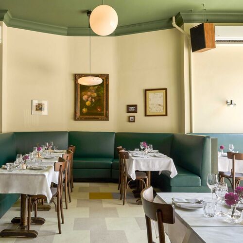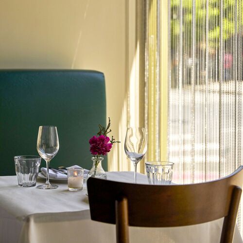 Set on the corner of Halsey and Throop in Bed-Stuy, Daphne's sparkles ever so subtly thanks to a front window covered with strands of tiny, twinkling silver beads. But it's not just the exterior that invites curiosity; this refined, contemporary Italian-American restaurant dazzles with its tightly edited menu, too. From shareable plates and house-made pasta to entrees, there is something tempting at every turn. Do not miss the delicious golden-brown focaccia with anchovy butter or grilled mortadella over a bed of house-made giardiniera. Then, mustard green pesto stars in a dish of radiatore pasta, while a grilled pork chop with slow-cooked greens, pancetta, and cicerchia beans is especially flavorful and tender.