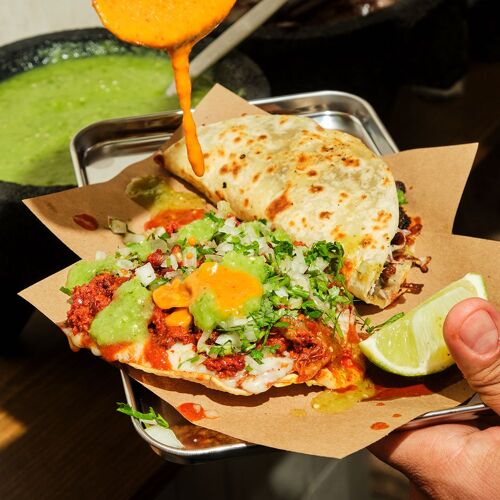 t's a simple space with a sprinkling of seats and counter space, but you're not here for ambience. You're here to eat well, and this concise menu of deftly executed tacos, vampiras, and quesadillas certainly delivers. Choose from delicious items like corn tacos with shredded al pastor layered with red salsa and sweet pineapple or a deeply flavorful, aromatic chorizo with raw onion and cilantro. Another can't miss? The vampira, a single fried tortilla with cheese and salsa verde topped with a mound of velvety beef lengua and a riot of fresh toppings.