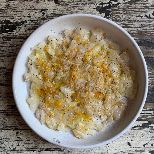 Start with the veal sweetbread skewers with soy-cured egg yolk. Or the crisp chickpea crepe, woven with pieces of squash blossoms that lures you in with a layer of glistening lardon. Fried skate wing comes to you deep golden and impossibly crisp, and the Berkshire pork is tender with a hint of cider glaze. Let the sociable staff talk you into closing over a silky crème caramel topped with deeply toasted crispy bits of soba.