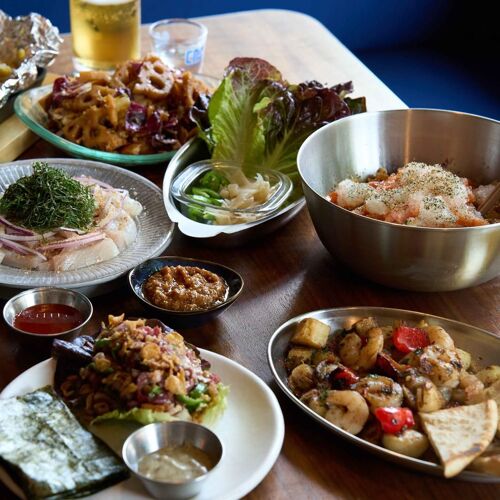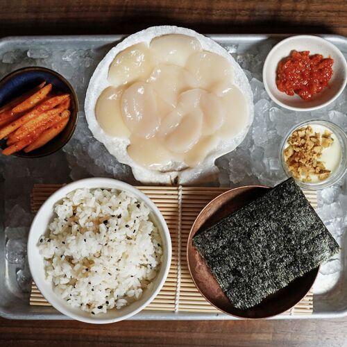 This Korean spot has a cool, vintage vibe that comes complete with wood paneling and banquette seating. Framed artwork highlights a maritime theme which comes as no surprise since this contemporary, shared plates-style menu zeroes in on the seaport city of Busan. Seafood specialties span every section and even include a bibimbap made with uni cream. Be sure to try the scallop DIY gimbap, with thinly sliced raw scallops served alongside squid jeotgal, scallion mayo, apple kimchi and crispy gim/seaweed squares for assembling. Corn crème brûlée mixed with shaved white chocolate is a creative take on the classic, with a savory-meets-sweet appeal. Cocktails are definitely worthy of a sip.