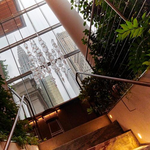 It may have a classic-sounding name, but Le Pavillon resides in one of the city's newest skyscrapers. The elegant dining room, with its soaring ceilings, plate glass and warm palette, makes the well-heeled feel right at home. You'll rub shoulders with many at the bar, a prized perch crowned by a dramatic blown glass chandelier. Chef Daniel Boulud and co-executive chef Will Nacev skillfully prepare a contemporary, globally inflected carte dominated by seafood and vegetable-focused items. Spaghetti alla chitarra may be twirled with Meyer lemon butter sauce and crowned with Kaluga caviar; while various preparations are produce-focused, as in a roasted cauliflower with locally grown Aleppo pepper muhammara and heirloom beans.
