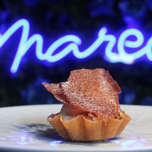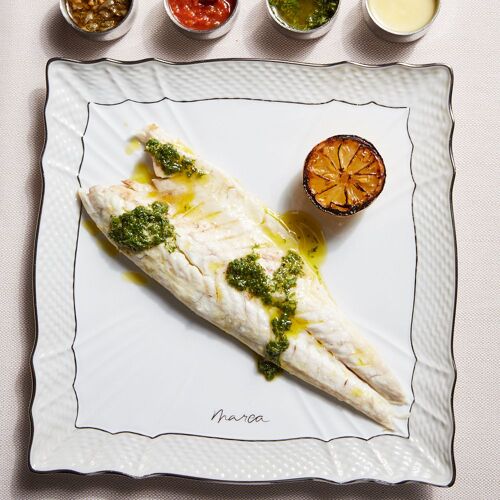 The focus of this Italian cuisine is seafood and offers an array of raw fish and crudo such as diced branzino that is presented with chopped pistachio and flecks of crispy garlic and shallot.