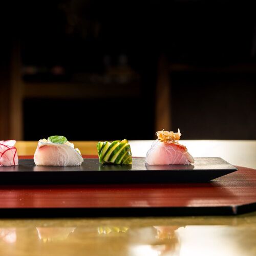 "Simplicity is the peak of elegance" seems a fitting adage for this stunning kaiseki counter. In Japanese, "tsukimi" means moon viewing (a harvest festival honoring the moon at its fullest and brightest); and following the moniker quite literally is a central motif of the moon. Illuminated shelves of ceramics and mirrored panels reinforce this light-bright aesthetic. Service is seamless and unaffected, enhancing the overall experience.
