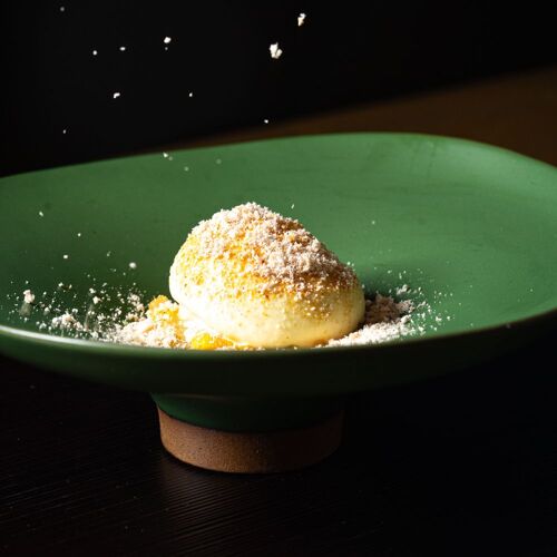 The progression of the these whimsical, seasonal courses is strategic and imaginative. To start, chilled caviar with warm scrambled eggs and potato purée. Up next, chopped scallop matched with sea buckthorn sauce and a nori crisp for crunch.