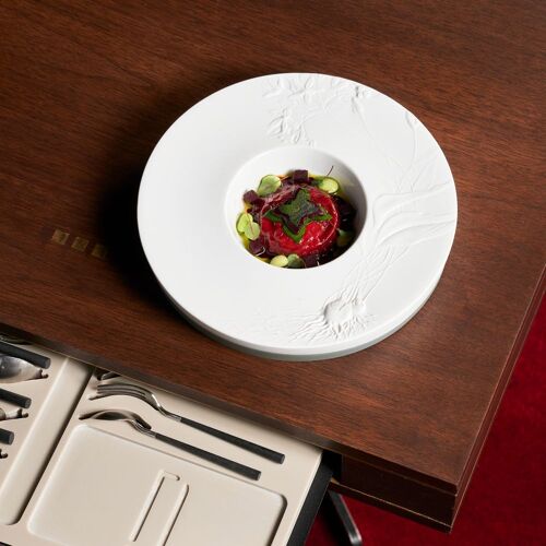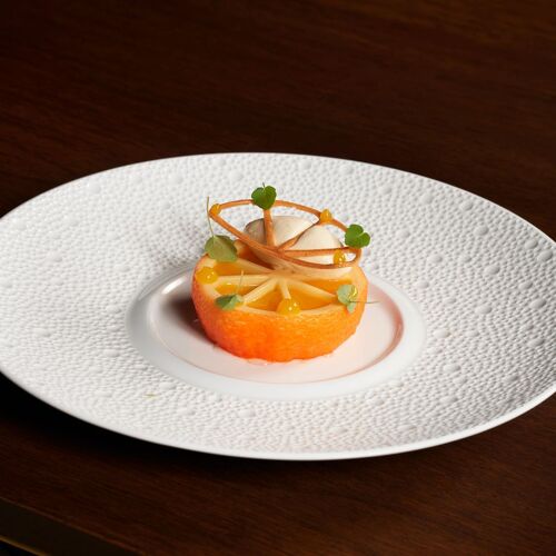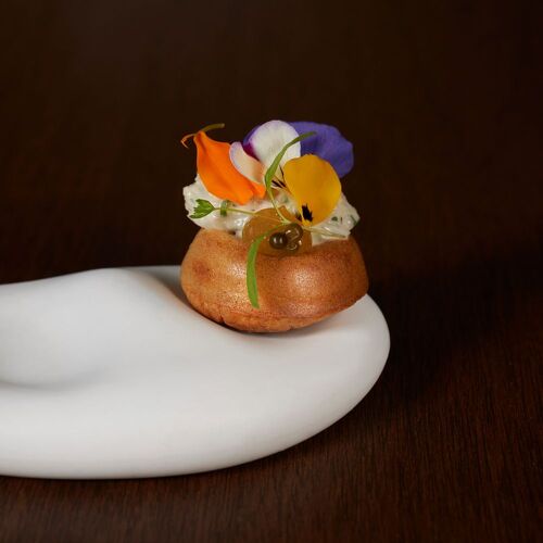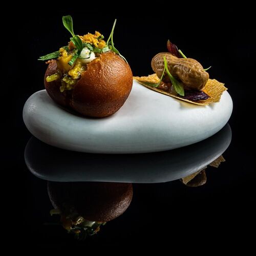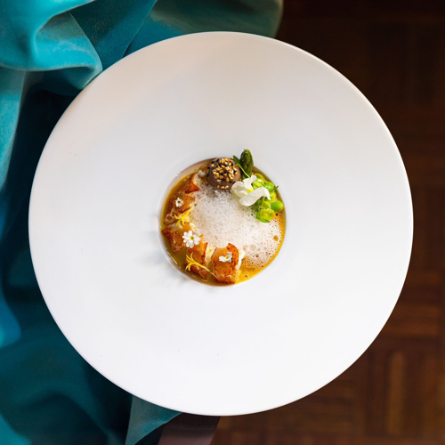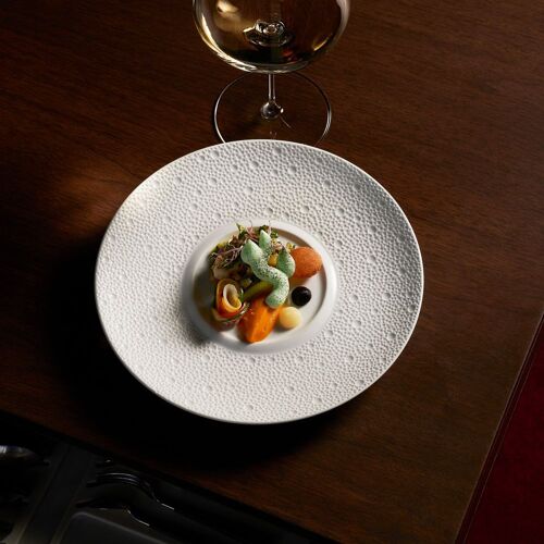 With its neon lights, bold graphics, street art and night-club atmosphere, Daalder makes a striking impression. In this hip spot, Dennis Huwaë says he can really do his thing. Renowned for his creative yet unpretentious cooking, he continues in this vein with conviction. His strong personality resonates in every detail. You can even watch the chef and his team in action on an actual "cooking stage". Chef Huwaë draws on his Indonesian roots and other Asian influences to add pep to his inventive creations, and he is certainly not averse to contrasting flavours, although at times he also reveals a classic touch. Langoustine, for example, is briefly seared and served with a silky cauliflower cream, yuzu and miso gels, as well as foamy kefir and bisque sauces. Subtle, intense, explosive – this is Dennis Huwaë through and through. Meticulous but generous, he is always in pursuit of variety and the element of surprise. Daalder is, above all, a place where fun takes centre stage.