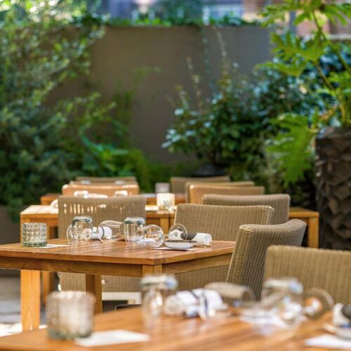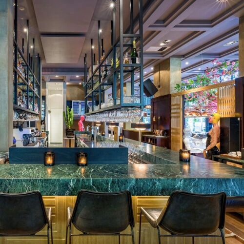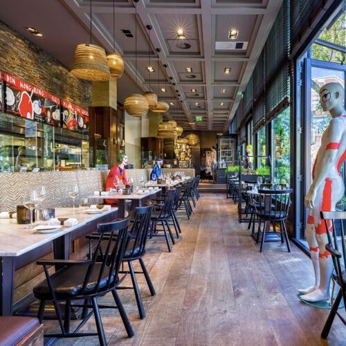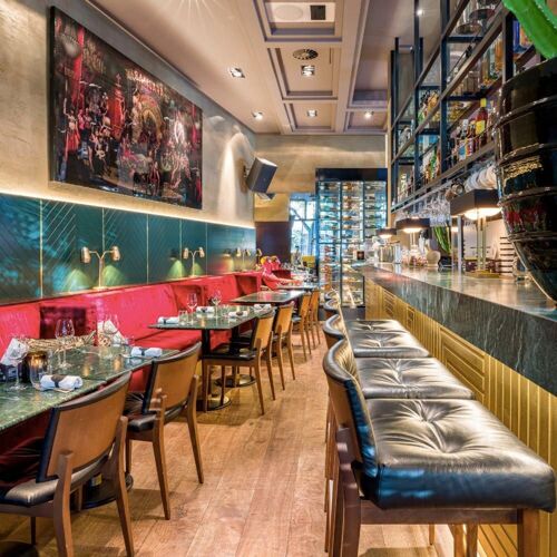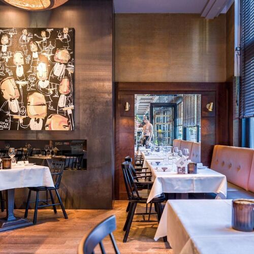 Ron Blaauw can safely be called a culinary mastermind. In 2013, the popular chef transformed his two-Michelin-star restaurant into this accessible gastrobar and immediately made it a success. The establishment is urban, colourful and hip. Even a visit to the toilet is an experience here – football commentary can be heard in the men's room, while the ladies are treated to jokes. Chef Blaauw has created different vibes in which you can discover his relaxed gastronomy. There is no room for frills in this gastrobar, but all the more for original combinations and distinctive flavours. Here you can enjoy inventive simplicity. Smart, refined, distinctive. Think, for example, of a rosé-cooked pigeon fillet “en croûte” with a slice of goose liver, accompanied by grilled spring onion and a sauce based on morels, cognac and a poultry gravy for deep power. At Ron Gastrobar, the flavours swing on the plate. The impressive menu offers classics such as beef Wellington, vegetarian options such as the amazing onion Martini (with Comté cheese foam!) and top-quality products such as wagyu and sea bass prepared on the barbecue. You'll want to try everything here! At Ron Gastrobar, the flavours of the cosmopolitan city of Amsterdam come to life.