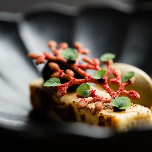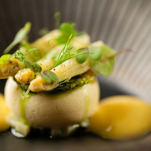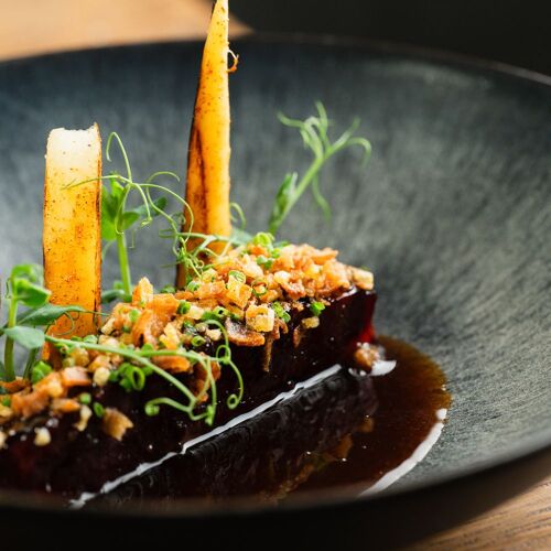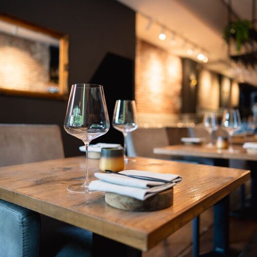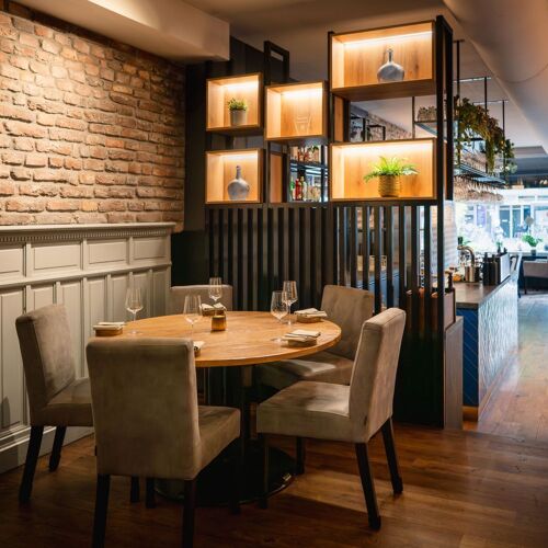 East meets West at this restaurant, where chef Alexander Ioannou spices up familiar flavours with subtle touches of acidity and an interplay of exotic seasonings. This is creative cuisine that packs a punch, but for all the complexity of its flavours, it is very easy to enjoy – just take a look at all the happy faces around you. The chef likes to come to the table to present his signature celeriac dish. You might want to congratulate him on his fabulous creation: He imbues thin slices of celeriac with smoke on the barbecue and combines them with a celeriac cream, a perfectly runny egg and a robust hollandaise sauce. A creamy garlic sauce provides the necessary finesse, shavings of black truffle add their distinctive fragrance. The open kitchen, to the rear of this trendy establishment, means you can watch the spectacle of the chefs at work. This is a laid-back setting place in which to discover a host of new flavours – and that goes for the wine too; the dedicated sommelier will enthusiastically guide you through the list. One final tip: Be sure to book because this place has plenty of fans.