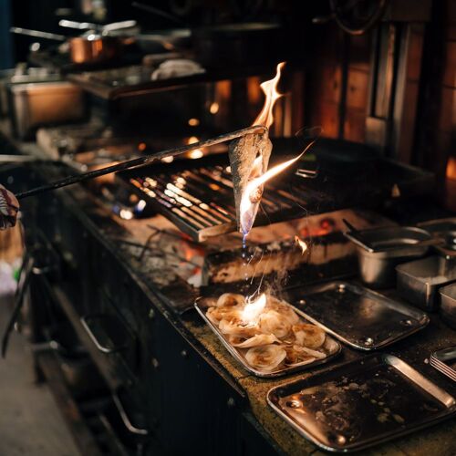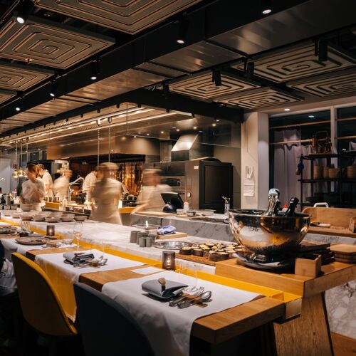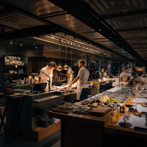 This restaurant occupies the third floor of a building by architect Jan Wils, who also designed the Olympic Stadium across the street. No doubt Wils would have been proud of this American-style urban brasserie, which feels both grand and intimate. The cocktail bar is delightfully trendy. The cuisine never fails to impress – especially its use of fire. Chef Joris Bijdendijk and his team love to cook with the charcoal grill and traditional ovens, which they handle with great skill. For instance, they pair fluffy deep-fried bara (a Surinamese-Hindustani snack) and crispy veal sweetbreads with a zesty vinaigrette made with yuzu, raw green tomatillo and herbs picked from their own garden. Bold flavours are given extra depth with a sure hand. Their commitment to sustainability fuels their creativity, as seen in the parfait glacé made with stale bread from their bakery. The chefs have a penchant for plant-forward cuisine and enjoy playing around with spices and contrasts. An exciting dining experience is guaranteed!