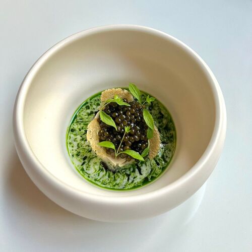 Everything is just right in this small fine dining restaurant in the student quarter of Kwartier Latäng, from the service to the ambience to the cuisine. Not only has it been given a tasteful, modern facelift, but the chef is also a new addition. Since August 2021, Leon Hofmockel has been bringing his own fresh ideas to the table. With consummate skill, he conjures up subtle contrasts, plays with acidity and textures and creates a beautiful balance. The result is intelligently structured dishes full of surprising flavours. Meanwhile, the service is second to none: in a friendly, lively atmosphere, the dedicated team has a cordial and courteous approach to each guest – everyone clearly enjoys what they are doing, which simply cannot fail to put you in a good mood!