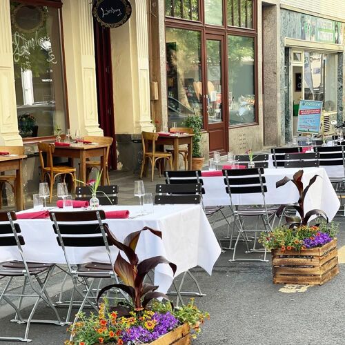 A wonderful addition to the Belgian Quarter's fine dining scene. The atmosphere is pleasantly laid-back and the vibe tasteful, whether you dine in the ground-floor space or at BelEtage. Chef-patron Alen Radic showcases his cosmopolitan cuisine, which draws on French influences and is made with fresh, good-quality ingredients – served as a set menu (vegetarian version available) or à la carte. The slightly shorter set menu served at lunchtime is also popular. The sheltered courtyard terrace is particularly inviting in summer.
