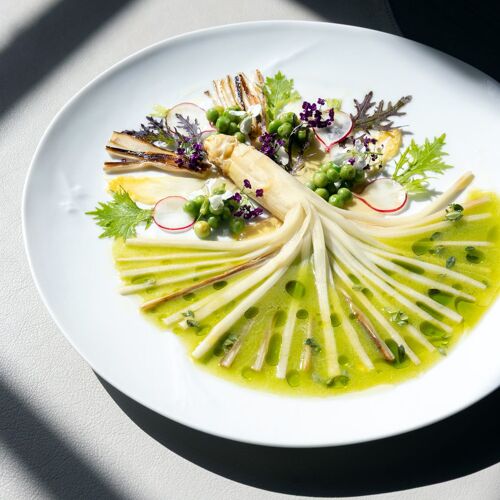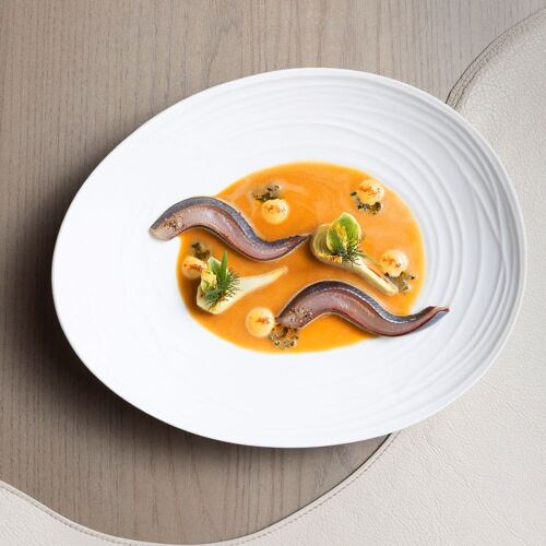 Located in the central edifice of Bordeaux's iconic Place de la Bourse, opposite the Miroir d'Eau water feature, this establishment is run by the owners of Château Angelus and Logis de la Cadène. The gorgeous 18C parlours have been converted into a single open space and lavishly appointed – oak parquet flooring and thick carpets, wood panelling and mouldings. Youthful Bertrand Noeureuil, who worked under Arnaud Donckele, crafts a seasonal menu of maritime inspiration: “Chambrelent” fillets of young mackerel, Loubésien hake mimosa with morels or kokotxas (Basque fish stew) with wild leeks… He’s also a dab hand at more classical turf dishes, as his “Entre-deux-mers” lamb with spring vegetables and a seafood note consummately illustrates. Over 1 000 labels in the staggering wine list.