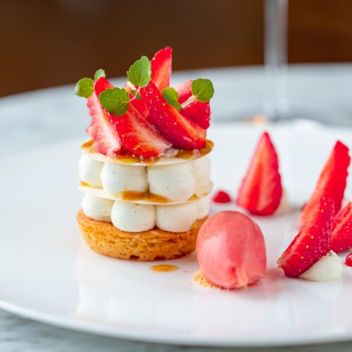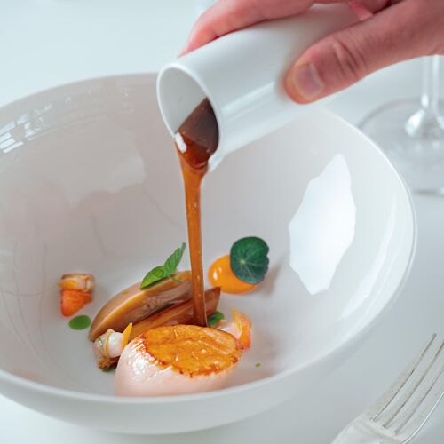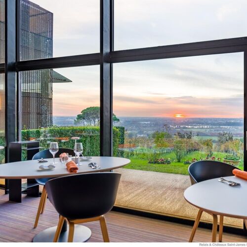 (Temporarily closed) An iconic establishment if ever there was one. For many years, Le Saint James was the realm of its avant-garde founder, chef Jean-Marie Amat; he commissioned Jean Nouvel to redesign his premises, which opened in 1989 and became a benchmark in design – and now they are to undergo major renovation works again. The restaurant pays tribute to Nouvelle-Aquitaine producers by elevating the fruits of their labours, from Gironde caviar to Bazas beef. Chef Mathieu Martin's appealing cuisine is refined, delicate and as fresh as can be, cf. the remarkable, perfectly cooked tuna from Saint-Jean-de-Luz. The chef makes no bones about his love of plants, eg tomatoes, plain and with chilli, clear soup. The legend of Le Saint James lives on!