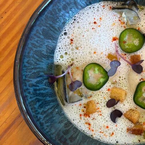 Just 100m from the beach and the port of La Hume, this modern, attractively done out bistro is the ideal place to share a handful of starters with friends or family, or to indulge in classic dishes given a lovely twist by chef Nicolas Vallois: poultry, duck and prune pâté en croûte; egg verjuice mayo, celeriac, baby gem and Granny Smith remoulade, salted egg yolks; pork confit cromesquis etc. The cellar features a good selection of organic and natural wines, as well as a fine selection of wines by the glass. When the weather permits, plump for a table on the large, pleasant, shaded wooden terrace and settle in for a relaxed meal.