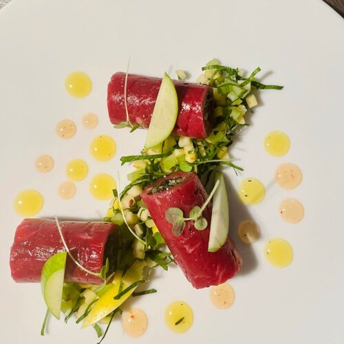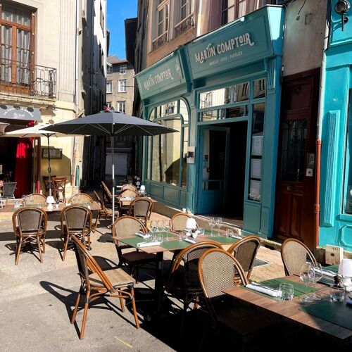 A stone’s throw from the market (ideal for fresh produce), the clientele is drawn by the work of youthful chef, Martin Dumas, also a local lad. His culinary score, perfectly in tune with today’s tastes, features a brief seasonal menu, generous hunks of meat to be shared and the house speciality, “thickly sliced calf’s liver”, which he learnt from Jean-Paul Arabian in Paris. Small, quiet terrace.