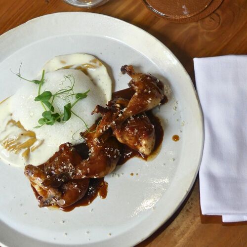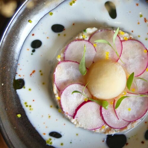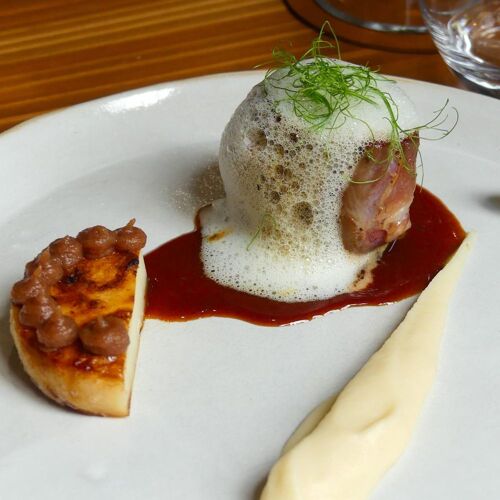 Housed in a half-timbered building that is typical of this part of France, this restaurant is the domain of Mathis Devaux. The son, grandson and nephew of chefs, you could say he was born into the profession. Expect a decor of terracotta floor tiles and exposed beams, with crockery and tables designed and made by local craftspeople. The chef concocts modern bistro cuisine, drawing on local produce (including black Gascon pork) in dishes such as poached monkfish, fondant leeks with aioli and zest of black lemon, or chocolate and fleur de sel Genoise sponge, vanilla mascarpone cream and a cherry gelée.