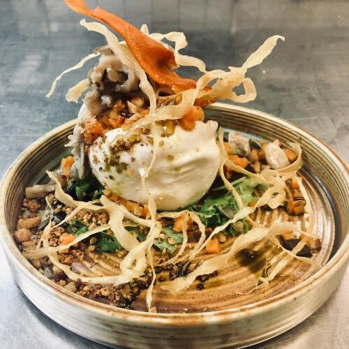 Beautifully located on Sainte-Marie-de-Ré market square, this laidback eatery offers bistronomic fare with a distinct preference for local veg from mainly organic small market gardeners. The frequently changing concise menu stars seasonal ingredients, together with local fish and offal. Everything is fresh, well executed and good value for money, illustrated by a tender slab of pearlescent haddock or a 64°C poached egg in a creamy mushroom sauce topped with crispy bacon pieces.