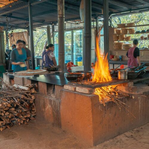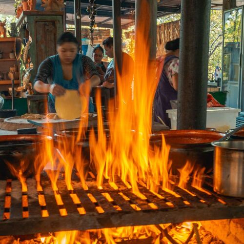 For an adventure off the beaten path, make the trek to this rustic countryside kitchen south of Oaxaca City. More than once, you will wonder if you’re headed in the right direction, up until you find an expansive shed with an open-air dining room surrounded by plants, trees, and pottery. Sweet smoke wafts from the kitchen, which is powered by burning logs that cooks move around with their hands. The offerings are traditional: Crispy memelas, hearty enmoladas enrobed in mole, and sizeable tlayudas stuffed with local cheese. Excellent tableside salsas enliven everything they touch. It goes without saying that this outdoor experience has plenty of charm and also assumes that guests don’t mind dining with the elements.