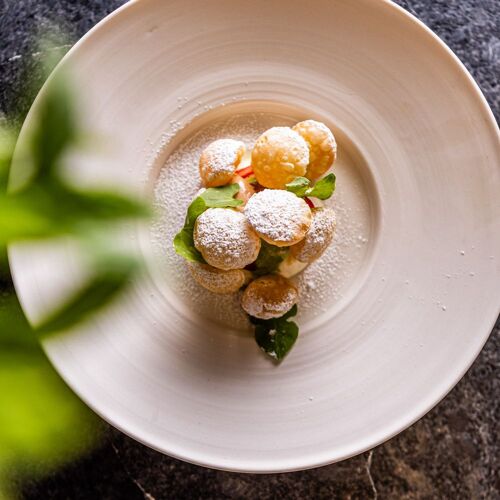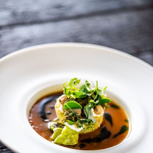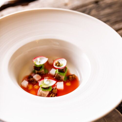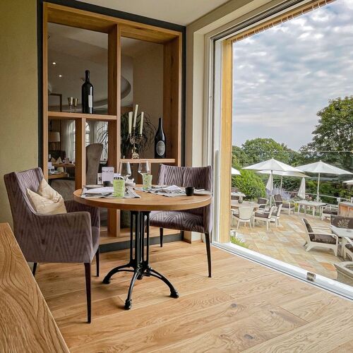 This tasteful restaurant in the appealing hotel of the same name promises a modern, elegant decor and a pleasantly quiet, almost intimate atmosphere, as well as attentive and proficient service, and – last but not least – really good cuisine based on selected ingredients. Quality and craftsmanship are evident in dishes such as the dumplings and caviar from wild-caught pike with lime and chives or the Rahmbeuscherl made with Mühlviertel milk-fed veal lights, served with Serviettenknödel (bread dumplings) and fresh marjoram.