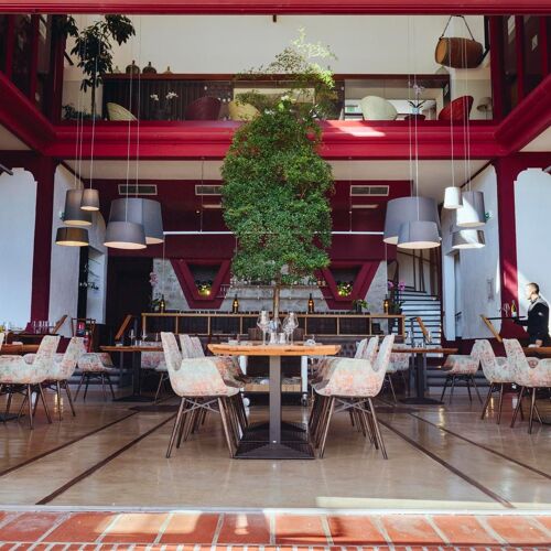 This converted wine storehouse with its authentic metal frame is spacious, comfortable and oozing in charm! The cuisine is aligned with the seasons and relies on small-scale local producers. Delicate, colourful dishes can be paired with wines from the estate, which are produced without additives, using agroecological methods. Pleasant guestrooms for overnight stays.
