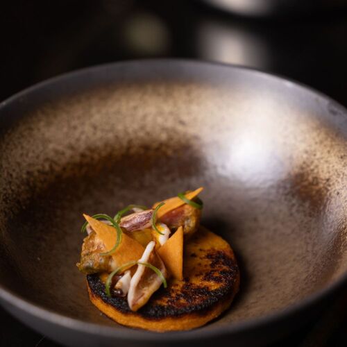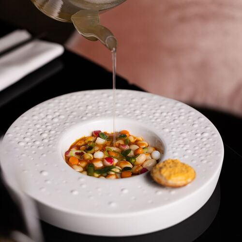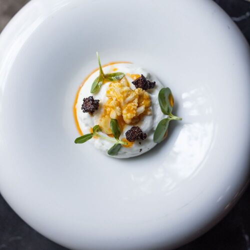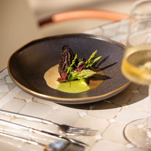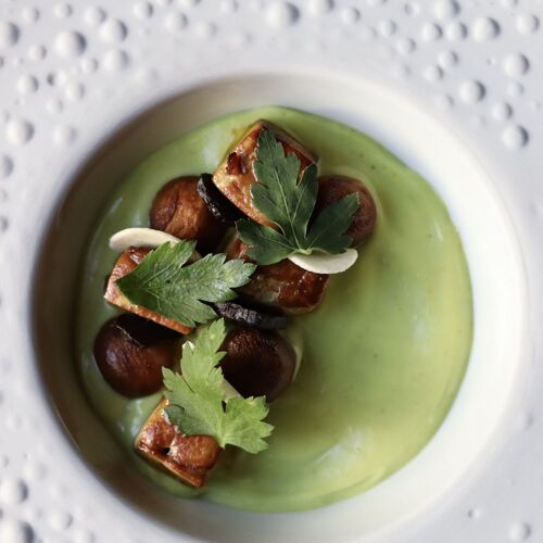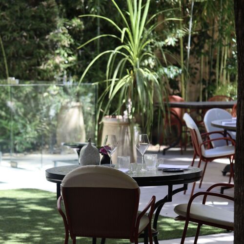 This magnificent 15C town house is home to a fine dining restaurant which sports a plush velvety interior and a huge counter separating the room and the kitchen. Former second of Georgiana Viou, chef Luka-Tao Debenath deploys his creative streak in appetisers like a grassy runner bean jus followed by a starter of brioche bread roll stuffed with garlic-laced brousse cheese, lemon and mint, crunchy beans, samphire and garlic flowers. This may then be followed by grey mullet breaded in fig leaf and served chilled with garden tomatoes and fresh herbs, a tarragon bearnaise sauce and a tomato water. Youthful pastry chef Auriane Fougeray is just as inventive as her melon, honey and frothy egg custard delight demonstrates. In fine weather, tables are laid in the large courtyard. The lunch menu (drink included) is a steal!