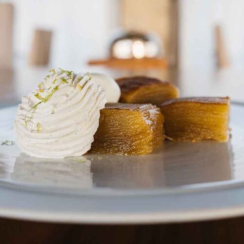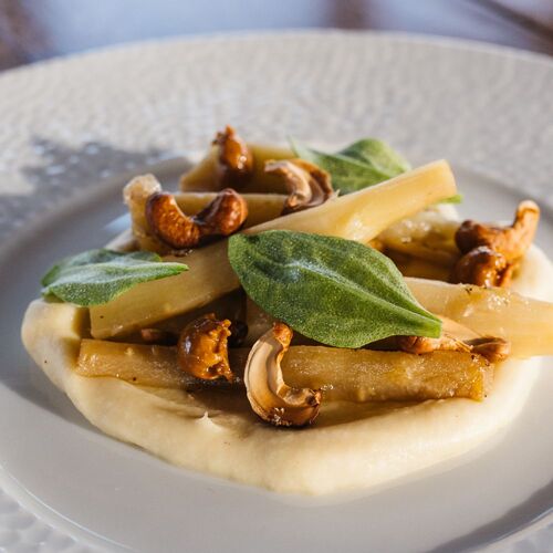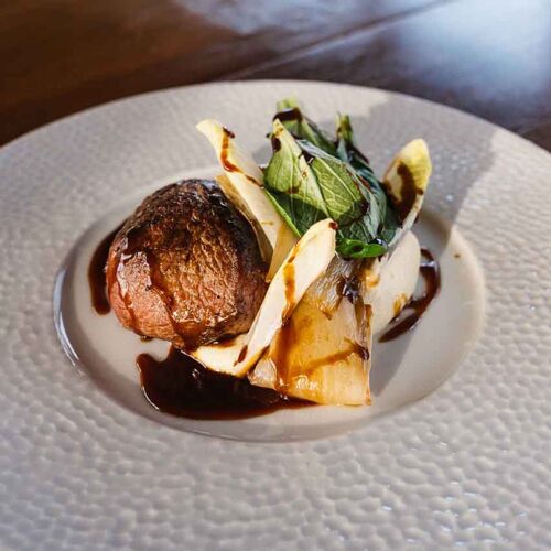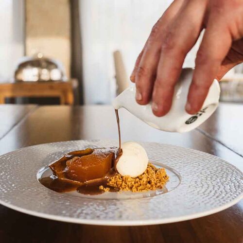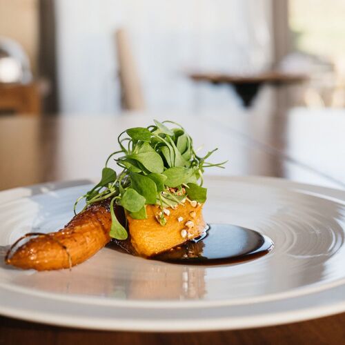In an outbuilding of the château, this restaurant boasts a baroque style, with waxed concrete floors, vintage chairs and a chandelier. But what really catches the attention is the chef's indulgent contemporary cuisine. High-quality ingredients make for clear, distinctive flavours, a case in point being the lovely roasted carrot starter with its crispy Vieux Rodez cheese tuile. The presentation of the poultry on a compote of tart cherry tomatoes is impeccable. They also have a number of guestrooms and a spa for those looking to prolong the experience.