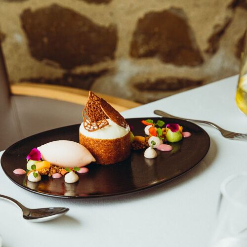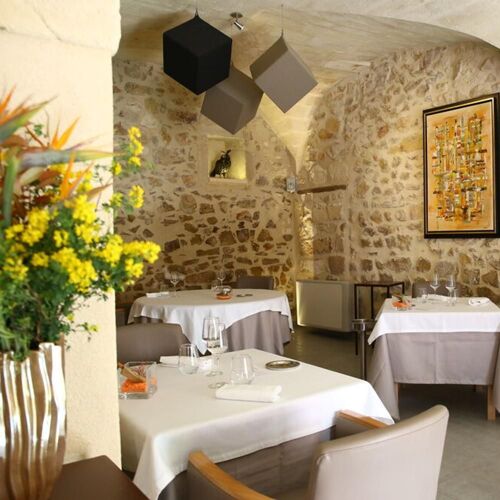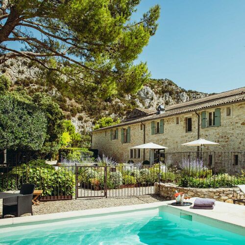 Near Avignon, this remote Provençal farmhouse set between cliffs and vineyards does not compromise on authenticity. The scents of the garrigue fill the tastefully renovated interior, which sports a harmonious blend of period details and modern fittings. In the kitchen, Maxime is assisted by his father, Serge Chenet, Meilleur Ouvrier de France. The pair share a love of all things natural and the seasonal ingredients bursting with the flavours of this sun-drenched region. These Bretons, who haven't turned their backs on the staples of butter and cream, work together to concoct a tasty Provençal-inspired market-fresh cuisine: Mediterranean red mullet fillet in a fennel rouille, bouillabaisse jus; duo of strawberries and black olive confit, olive oil ice cream, tapenade madeleine. Housed in a 17C cottage, the six guestrooms are conducive to unwinding.