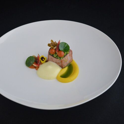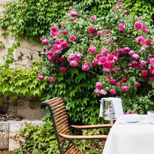 The fine dining restaurant at Château de Montcaud is headed up by a chef with international experience, the talented Matthieu Hervé. A constantly updated surprise set menu offers a succession of beautiful, meticulously prepared dishes: blue crab, jellied langoustine consommé; John Dory, romesco sauce, rock fish soup (a dish bursting with sunshine); fillet of veal in a crust of fresh herbs, cream of chanterelle mushrooms and espuma of hay (a dish embellished with magnificent sauces). The intimate setting of a delightful courtyard covered with Virginia creeper accommodates only six or seven tables, ensuring a first-rate experience.