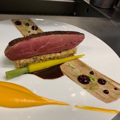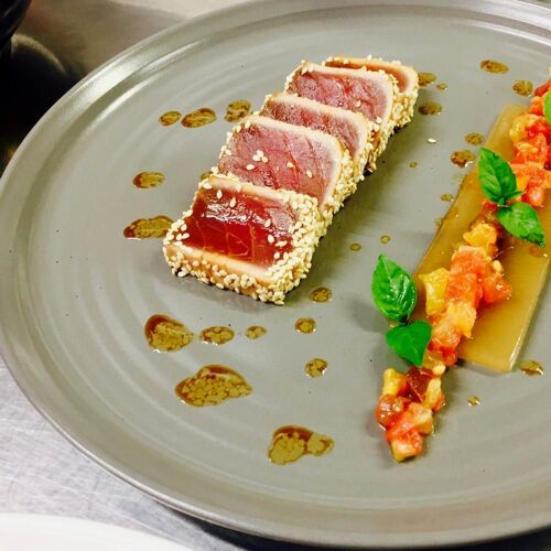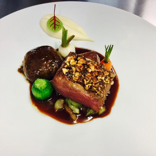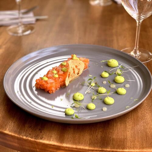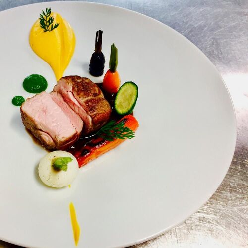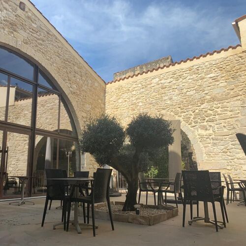 This former wine storehouse is now the restaurant of Guillaume Dercourt and Amandine Sabot, chef and pastry chef respectively. The cooking is resolutely modern in its form and draws playfully on the traditional French repertoire: chicken liver royale with port, creamy corn and red pepper gel; duo of pork with filet mignon cooked at low temperature and shoulder confit. Round off your meal with the nicely crunchy tartlet with black sesame, yuzu and vanilla bavaroise. You're sure to fall hook, line and sinker for this place – not least the gorgeous patio cobbled with old stone and featuring an olive tree!