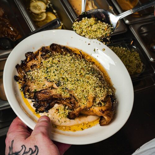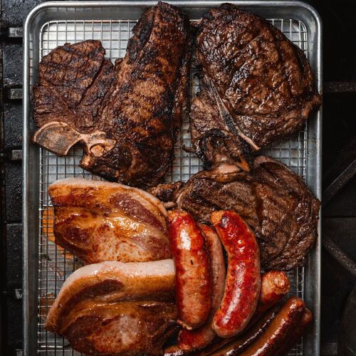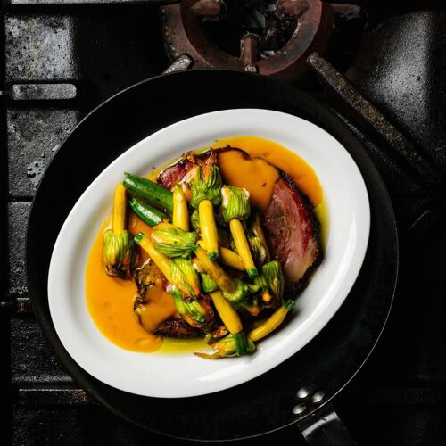 Every city needs a restaurant that’s easy for walk-ins, doesn’t take itself too seriously, and cooks with gusto. Focusing on house-made charcuterie and excellent steaks grilled over charcoal, this casual butcher delivers flavors in spades. One could make a meal out of superb slices of bresaola tinged with warm Christmas spices, melting sheets of mortadella studded with pistachios, and spicy salami lifted with orange zest. Steaks are sizeable, best shared with friends, and thrive with sauces like au poivre and piri piri. There are vegetables, too, like a cold green bean salad dressed with anchovy vinaigrette and toasted pine nuts. On the way out, check the surrounding fridges for take-home goodies like pork ragu, guanciale, and prime steaks.
