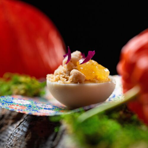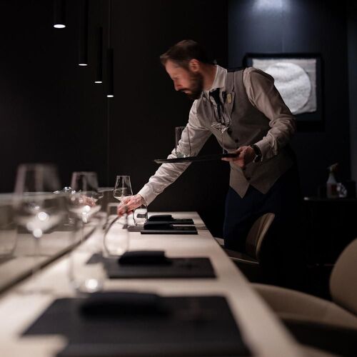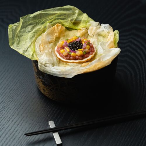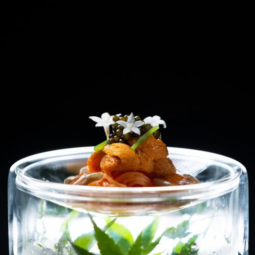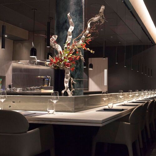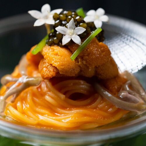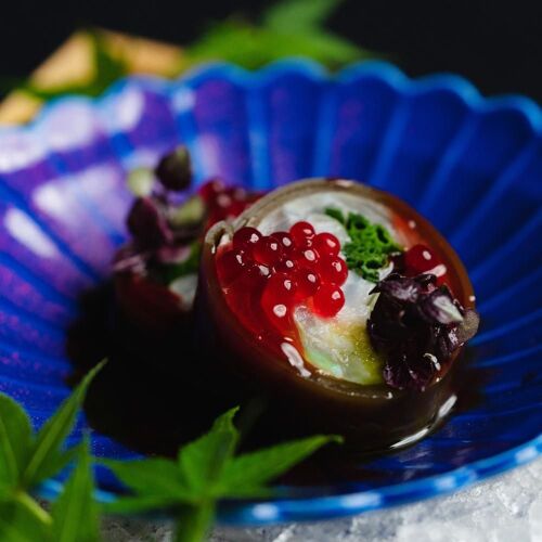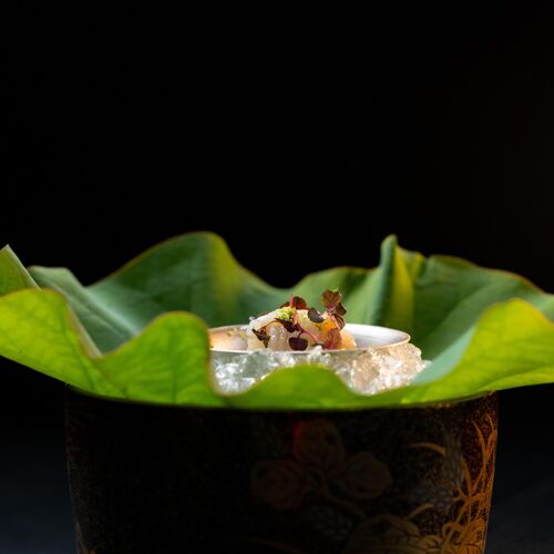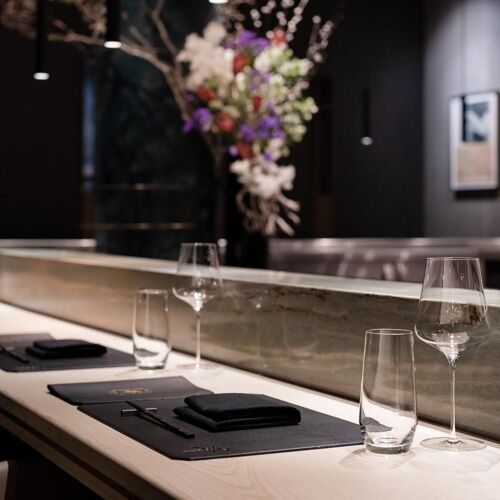 Chef Ryusuke Nakagawa presents a modern take on the history-steeped Kyō-Kaiseki menu. His cooking is personal and intricate, weaving multiple techniques and colors into every dish. The signature maguro flower, a rose made from pieces of akami and chutoro, is stunning, as is the duck breast meatball with foie gras, finished with thinly sliced black truffles. Dessert delivers a sweet finale.