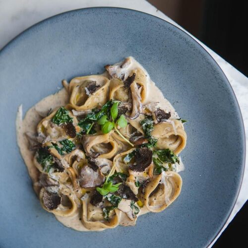 Panko-crusted meatballs, crab cakes with bagna cauda, pappardelle Bolognese. You could have a full dinner at this narrow hotspot in Trinity Bellwoods and not even realize that everything is meatless. Such is the charm of Jenny Coburn’s latest, plant-forward restaurant, which replaces her previous spot, Ufficio. High ceilings, exposed white brick, herringbone floors and a constantly packed dining room make for a stylish night out. House-made pasta is the prime order here, with one dish that has carried over from the previous restaurant: porcini agnolotti glossed in a sauce of butter and Parmigiano Reggiano, which can be made with vegan butter upon request. Unable to land a reservation? Walk-ins can snag a seat at the cozy, walnut-topped bar.