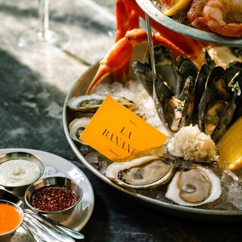 It may have something to do with the crowd of artists, movie stars and sophisticates who have made this their perch. Or, it could be the ambience defined by rich, seductive colors and loud, high-energy music. Either way, it's all very hip and very cool at La Banane. The cooking is equally lavish, featuring a well-stocked raw bar, wagyu steaks and plenty of truffle and foie gras in between. Start your evening at the elegant bar with a perfectly chilled shrimp cocktail before digging into Salt Spring mussels with Normandy cider and crème fraiche. Beef flatiron set in a delicious sauce au poivre is a classic done right. And to finish, don’t miss the Gâteau à la banane, a sweet cake accompanied by salted caramel ice cream and caramelized bananas.