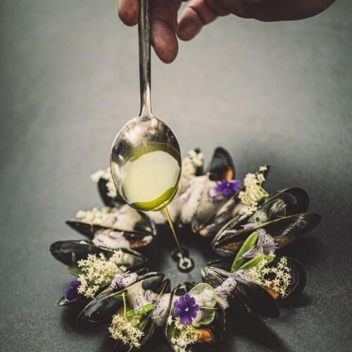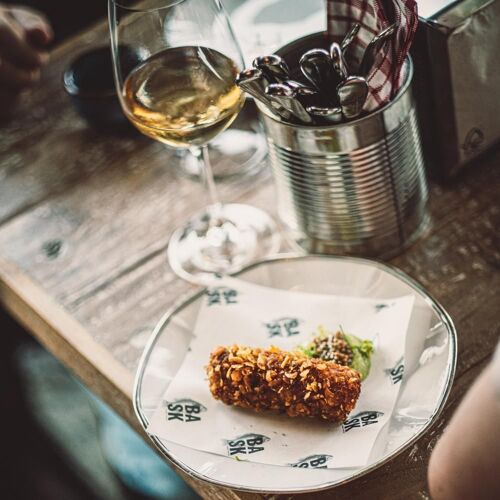 BASK is depicted by a mix of untreated vintage details and a buzzy, rock’n roll vibe. The refrigerated counter is piled high with seafood treats, which are then cooked over a wood-fired asador grill. The chefs have perfected the art of BBQ and craft a lineup of dishes to share of Basque inspiration, loaded with creative touches. Nibble on a few pintxos with your aperitif, before sampling delicacies like grilled turbot or juicy tender breasts of aged guinea fowl flanked by a rich gravy made from the neck. A festival of fascinating and felicitous flavours and delicate sauces. Should you have forgotten to book, there is generally space at the bar around the kitchen for a snack (or two)…
