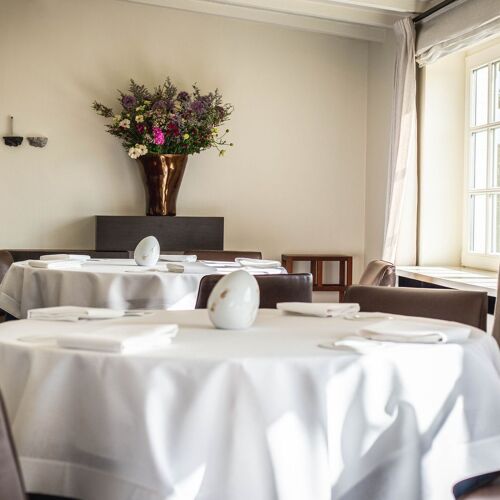 Floris Van Der Veken is following in the footsteps of his mentor, Peter Goossens. He has taken over this elegant welcoming farmstead and culinary landmark, whose codes he continues to uphold. As attentive as ever, Serge Sierens seamlessly supervises the front of house. A quick glance at the menus reveals the importance given to the ingredient. Corrèze lamb rules supreme in raviolis or in a medium rare saddle of lamb coated in a powerful meaty jus. This last-minute approach to dining demands painstaking attention, phenomenal knowhow and a scattering of international notes. The kitchen team attaches equal importance to a lowly leek or a noble turbot. Save room for afters, because the dessert trolley remains a highlight of this venerable establishment. It is also a pleasure to witness chef Van Der Veken’s quest for his own culinary identity.