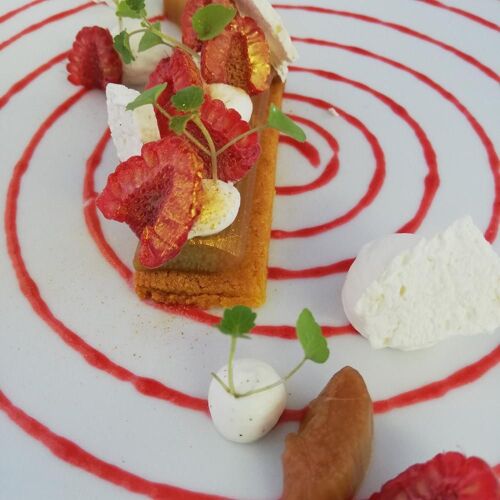 This inviting late-1940’s villa is enjoying a new lease of life thanks to two associates, formerly of Locguénolé chateau. The chef enhances regional produce in recipes with a creative twist, displaying a preference for surf and turf dishes. Welcoming and attentive service.
