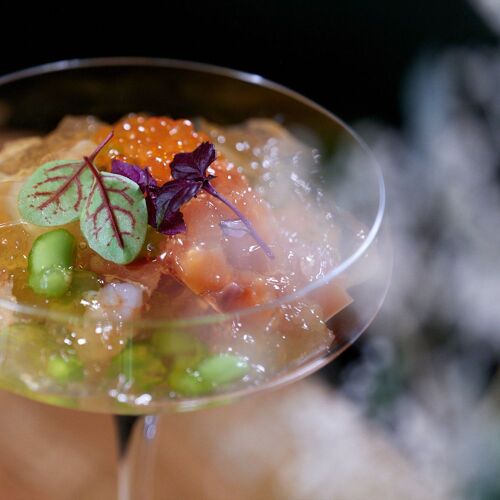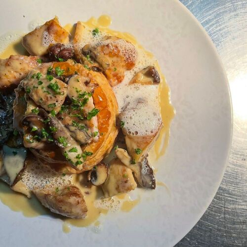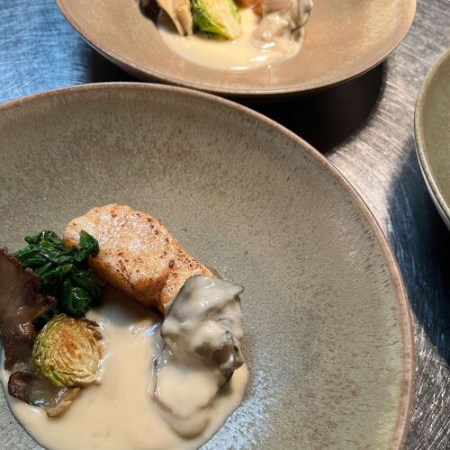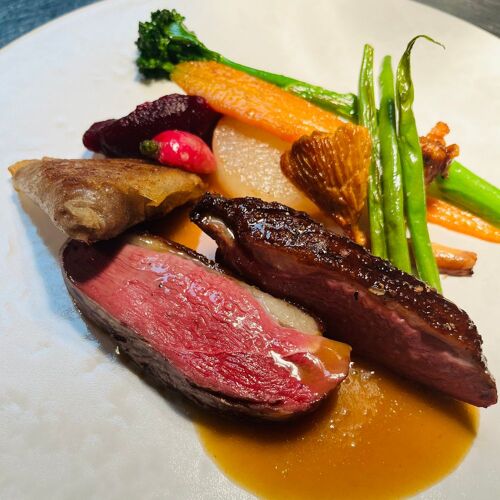 In the neighbourhood of La Doutre, Japanese chef Yuma Nishioka's culinary repertoire encompasses fish soup en croûte, duck and foie gras pithiviers, as well as a classic chocolate soufflé. He grills his beef round steak over binchotan, smokes half-cooked salmon over sakura wood and spices up his carrot mousse with a dashi jelly. In short, he has enough technical prowess up his sleeve to harmoniously blend ingredients from France and the Land of the Rising Sun.