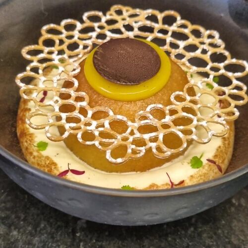 On the busy docks of the port, this cosy, colourful eatery in tune with the era serves a seafood menu that varies depending on the catch of the day. You may also be tempted by chef François Gauthier’s specialties, such as squid and cuttlefish flanked by an Espelette pepper sauce or pig’s trotters and ears in a mustard seed sauce. Discerning foodies should save room for the île flottante (egg whites floating on vanilla custard) and pink pralines (candied almonds) à la Alain Chapel – to die for!