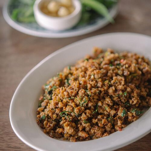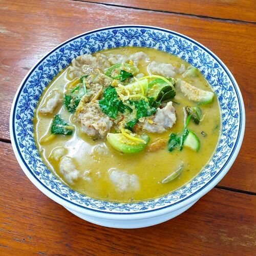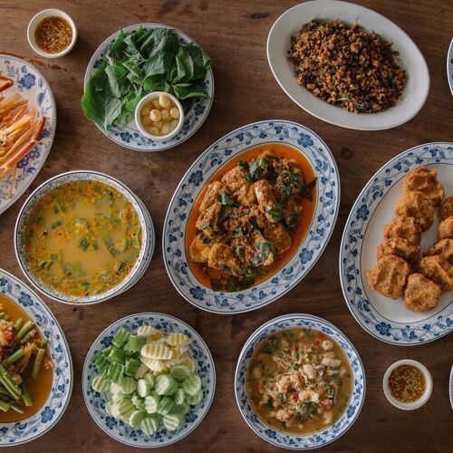 Here at this blue-roofed local favourite they prove there’s more to Ayutthaya than grilled river prawns. Ingredients are carefully selected from produce grown within the community and it uses fish from nearby rivers as the catch of the day. The herb-scented fish cakes are delectable, while stir-fried Chinese kale with deep fried salted fish is equally impressive. Portion sizes are generous, so check before ordering.