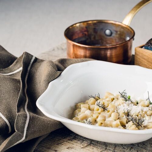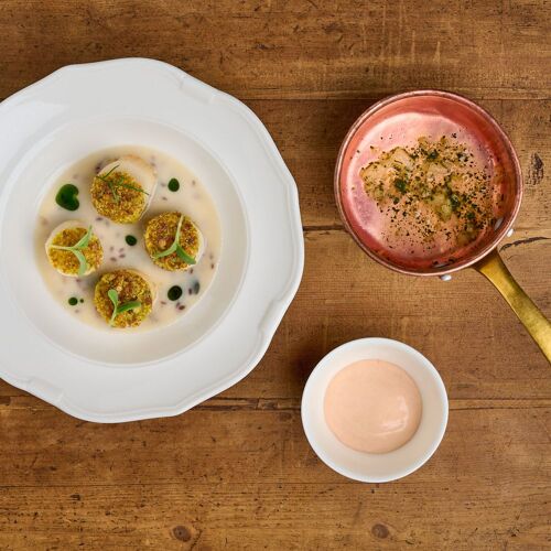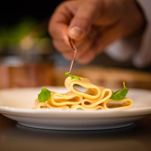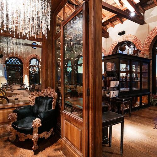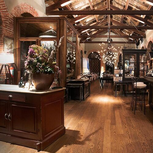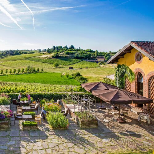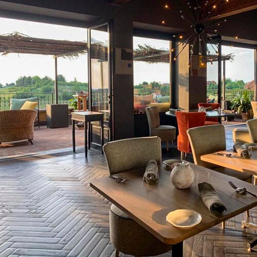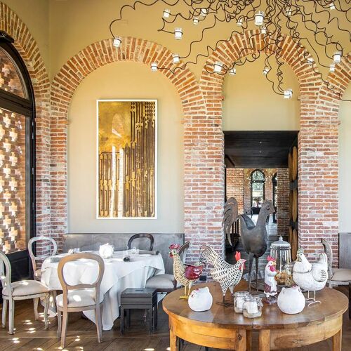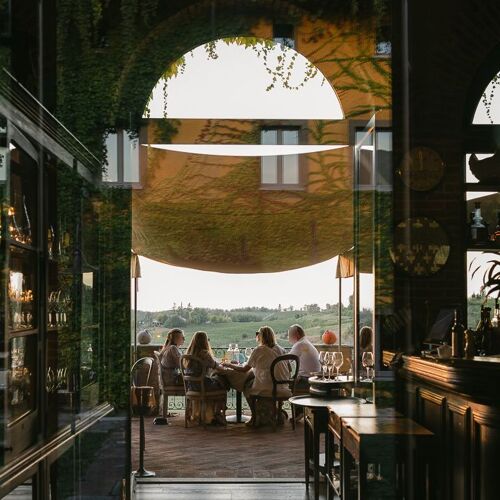 Villa Sparina is an elegant rural resort named after its winery. The Orangerie hosts guests, whereas fine dining unfolds at La Gallina restaurant: amid rustic and elegant settings, contemporary cuisine is presented, drawing ample inspiration from Piedmont, as well as nearby Liguria (the dessert "Good Morning Genoa" playfully mimics breakfast with cappuccino and focaccia), though Campania references, the chef's homeland, never falter. Personalised wine selection: exclusively Champagne, abundant Piedmont choices, with particular emphasis on Barbaresco and Barolo.