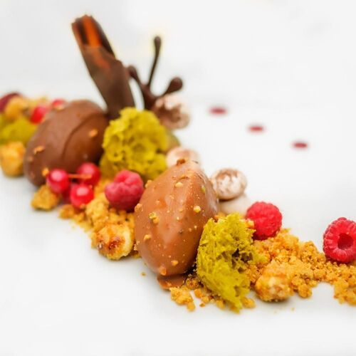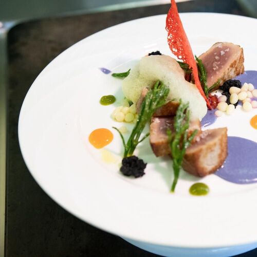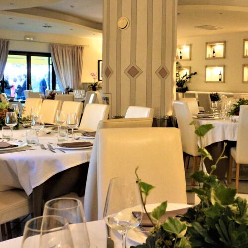 Visitors come to this restaurant for the fresh fish caught in the nearby Ligurian sea, such as the bouillabaisse and clam guazzetto (a type of stew), as well as more modern dishes, such as the scallops braised with peaches, lime and coconut. Meat also features on the menu, including suckling pig with apricots and wasabi, and ravioli del “plin” served with a seasonal sauce. The excellent cakes and pastries are also well worth a mention, as is the bread which is available for purchase throughout the year. In summer, the dining room is supplemented by outdoor tables which offer a pleasant alfresco dining experience.