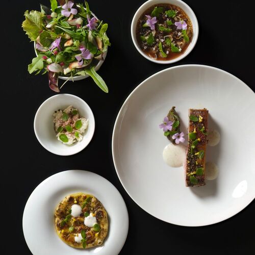 At this restaurant, the young yet already experienced Piedmontese chef (who also has Calabrian origins) offers three tasting menus. Dishes are also available à la carte style on two of the these: “Emozione” (which features creative dishes inspired by childhood memories and flavours) and “Voyage” (ingredients, recipes and influences from the chef’s experiences working around the world, including a delicious mango and coconut dessert). The third, “Mad100% Natura”, is a blind tasting menu on which the chef demonstrates his love and passion for his ingredients with real creativity. Most of his vegetables are sourced from local biodynamic kitchen gardens and greenhouses. On our last visit, we particularly enjoyed the mullet fillet in Valencian sauce. The high quality of the cuisine is equalled by the impressive selection of wines.